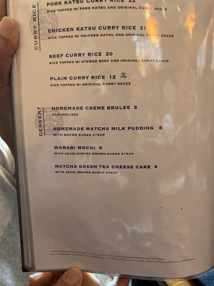 homemade curry udon broth, wheat udon noodle, stewd beef brisket and onion, green onion, tempura bits fish cake kamaboko